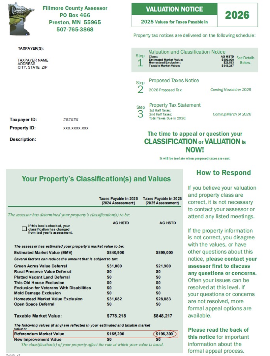 Grab your tax valuation notice from the assessor’s office, and use the calculator linked above to get an estimate of your individual tax impact. You’ll need to enter your Referendum Market Value, which you can find near the bottom of the notice.